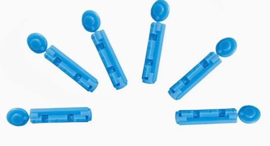 1, gebruikt om vingertip voor bloedbemonstering te doorboren.