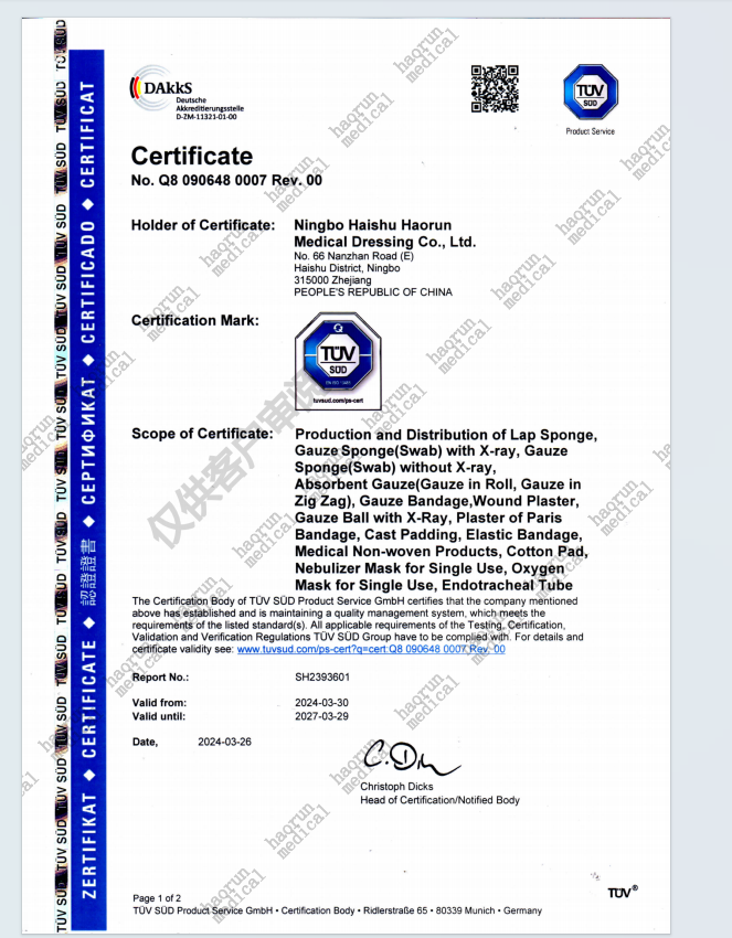 Een nieuw startpunt voor wereldwijde expansie: Via deze TÜV-audit is Haorun Medical van plan verder uit te breiden naar high-end markten zoals de EU en Noord-Amerika, terwijl het zijn leidende positie in bestaande markten zoals Latijns-Amerika en Zuidoost-Azië consolideert. De productlijn van het bedrijf zal zich ook uitstrekken van basisverbruiksartikelen tot producten met een hoge toegevoegde waarde. "Kwaliteit is niet het einde, maar een reis van voortdurende verbetering." Het bedrijf heeft zich altijd gehouden aan de hoogste internationale normen en levert veilige en betrouwbare medische producten aan wereldwijde klanten.