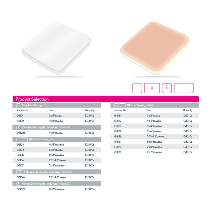 Schuimverbanden zijn zachte, gewatteerde wondverzorgingsproducten gemaakt van absorberend, poreus materiaal. Hun belangrijkste kracht ligt in het beheersen van matige tot zware wonddrainage, terwijl het wondbed op de juiste manier vochtig wordt gehouden om de genezing te versnellen. Het zachte schuim zorgt voor demping en bescherming, en het antiaanbakoppervlak zorgt voor pijnvrij verwijderen.