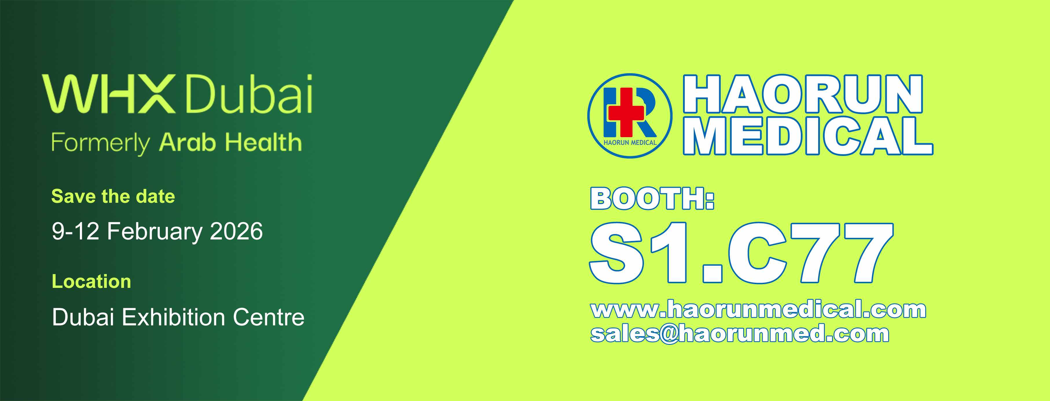 Van 9 tot 12 februari 2026 werd de langverwachte tentoonstelling WHX Dubai (voorheen Arab Health) groots geopend in het Dubai Exhibition Centre, wat wereldwijde aandacht trok van de gezondheidszorgsector. Als professionele fabrikant van medische verbruiksartikelen presenteerde Haorun Medical Dressing Co., Ltd zijn kernproducten op stand S1.C77, waarmee China's R&D-mogelijkheden en kwaliteitsnormen in de sector medische verbruiksartikelen aan wereldwijde kopers werden gedemonstreerd.
